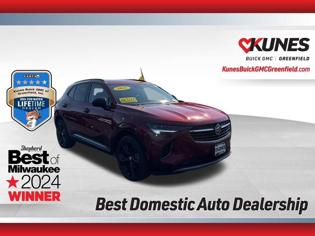 **PANORAMIC SUNROOF, **SUNROOF, **LEATHER SEATS, **APPLE CAR PLAY / ANDROID AUTO, **REMOTE START, **HEATED STEERING WHEEL, **HEATED SEATS, **BACK UP CAMERA, **BLUETOOTH, **KEYLESS START, **ALL WHEEL DRIVE, **REAR PARK ASSIST, **GREAT FUEL ENCONOMY, **WHOLESALE PRICING, **4 WHEEL DRIVE, **AFFORDABLE FINANCING, **NON SMOKER, **LOW MILEAGE! GREAT CONDITION!, **LANE DEPARTURE WARNING, **KEYLESS ENTRY, **BLIND SPOT MONITOR, 18 Machined Aluminum Wheels, 7 Speakers, 8-Way Power Driver Seat Adjuster, Alloy wheels, Apple CarPlay/Android Auto, Auto-dimming door mirrors, Auto-dimming Rear-View mirror, Black Roof Rack Cross Rails, Brake assist, Compass, Delay-off headlights, Driver 4-Way Power Lumbar Seat Adjuster, Driver door bin, Driver vanity mirror, Dual front side impact airbags, Emergency communication system: OnStar and Buick connected services capable, Front Bucket Seats, Front Center Armrest, Front Passenger 4-Way Power Lumbar Seat Adjuster, Front Passenger 8-Way Power Seat Adjuster, Front reading lights, Illuminated entry, Knee airbag, Leather Shift Knob, Memory seat, Occupant sensing airbag, Outside temperature display, Overhead airbag, Overhead console, Panic alarm, Passenger door bin, Passenger vanity mirror, Power door mirrors, Power driver seat, Power Liftgate, Power Panoramic Tilt-Sliding Moonroof, Power passenger seat, Power steering, Power windows, Radio data system, Rear Cargo Compartment Cover, Rear reading lights, Rear seat center armrest, Remote keyless entry, Speed control, Speed-sensing steering, Split folding rear seat, Spoiler, Steering wheel mounted audio controls, Tachometer, Tilt steering wheel, Trip computer, Variably intermittent wipers. CARFAX One-Owner. Certified. 22/29 City/Highway MPG Recent Arrival! Odometer is 4036 miles below market average! Priced below KBB Fair Purchase Price!Cinnabar Metallic 2021 Buick Envision Essence 4D Sport Utility AWD 9-Speed Automatic 2.0L TurbochargedCertification Program Details:** NO FEAR LIFETIME CERTIFIED PREOWNED **Over $2,895 of value at no cost!*LIFETIME WARRANTY!*3 Day Exchange Policy!*Complimentary powertrain warranty with ability to upgrade to fully comprehensive coverage and/or extend up to 125,000 miles!*125+ Point Inspection by our factory trained ASE Certified technicians and reconditioned to the highest standards.*Complimentary AutoCheck History Report*Complimentary AutoCheck Buyback Protection*Financing for Everyone - Guaranteed credit approval regardless of credit history!*Over 30 lenders who compete to get you the best financing terms*No payments for up to 90 days!*Weekly, Bi-Weekly, and Monthly Payment Options for all buyers!*First Free Oil Change!*Trade anytime policy - cars, trucks, boats, RVs, motorcycles - as long as we donât have to feed it, you can trade it!Find out why our dealerships have won DealerRater.com DEALER OF THE YEAR a whopping 10 TIMES! Call, email, or live chat with one of our friendly sales professionals now to schedule your test drive! Prices shown do not include tax, title, registration and $499 service fees.