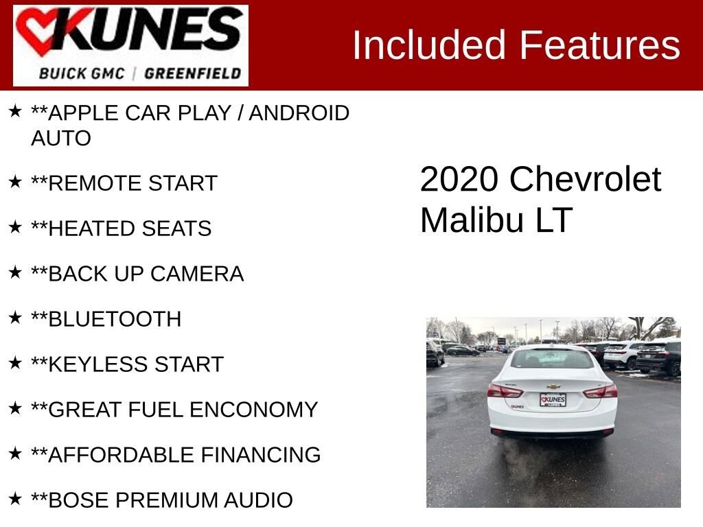 Summit White 2020 Chevrolet Malibu LT 4D Sedan FWD CVT 1.5L DOHC