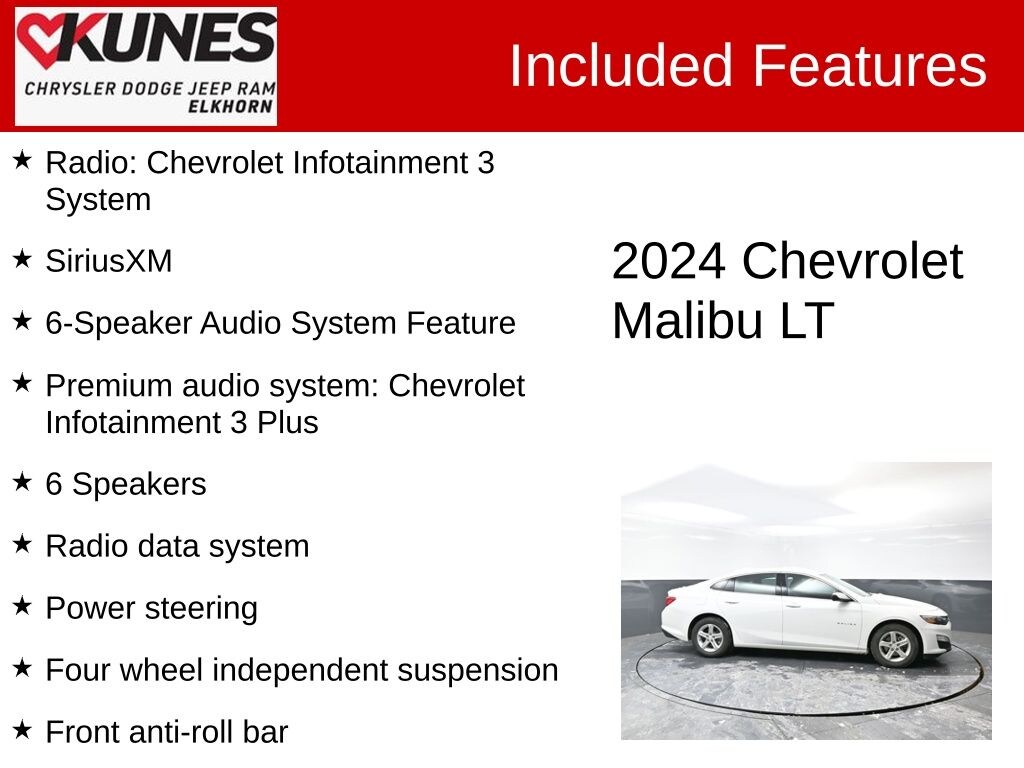 2024 Chevrolet Malibu LT 1LT Summit White FWD 1.5L DOHC