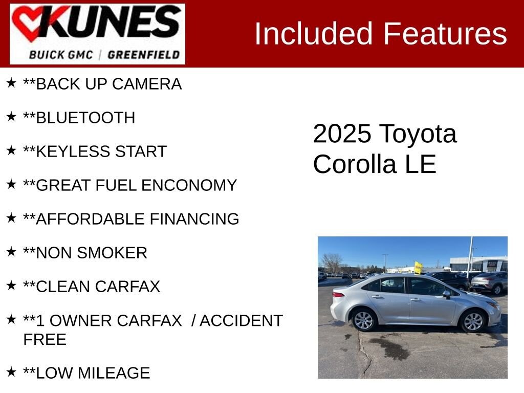 Classic Silver 2025 Toyota Corolla LE 4D Sedan FWD CVT 2.0L I4 DOHC 16V